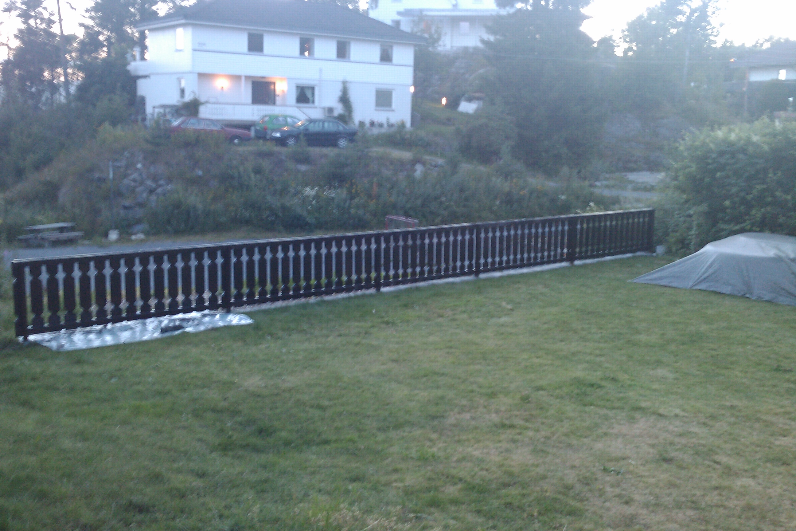 Idag var det gjerdet ned mot lekeplassen som skulle beises. Tok litt lenger tid enn planlagt, så litt sent ble det. Men det ser jo veldig bra ut da…