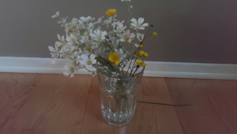 Så nå var moren innom her med selvplukkede blomster til meg. Så hyggelig. Føler meg som en liten helt her.