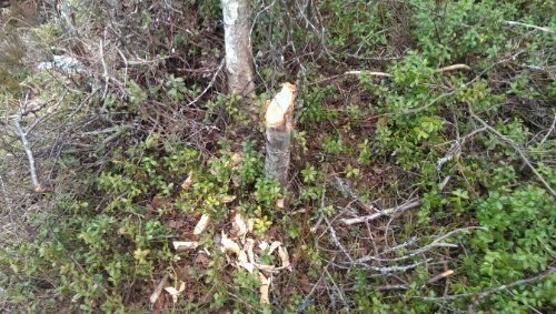 Fant mange tegn på bever på turen. Men alt var fra flere år siden. Spørs vel om det er noe særlig bever igjen på dette jaktområdet. Men jeg så flere storfugl. Ganske typisk at jeg ser så mange nå. Til høsten derimot…