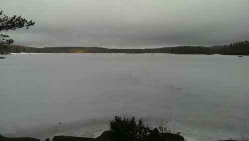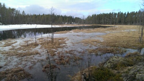Våknet tidlig og tenkte jeg skulle gå rundt og lete på andre steder. Har gått langt idag. Og det er mange myrer der, så det ble veldig tungt med rifle og tursekk. Ved Meitsjøen var det fortsatt is på vannet.