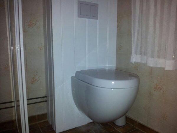 Så da gikk vi for et vegghengt toalett istedenfor. Ble litt mer arbeid en jeg egentlig hadde tenkt meg. Samt at prislappen ble tidoblet i forhold.