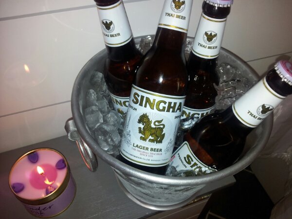 Når jeg kom hjem var badevannet klart, med noen Singha øl i is ved siden av. Nå skal jeg kose meg litt til.