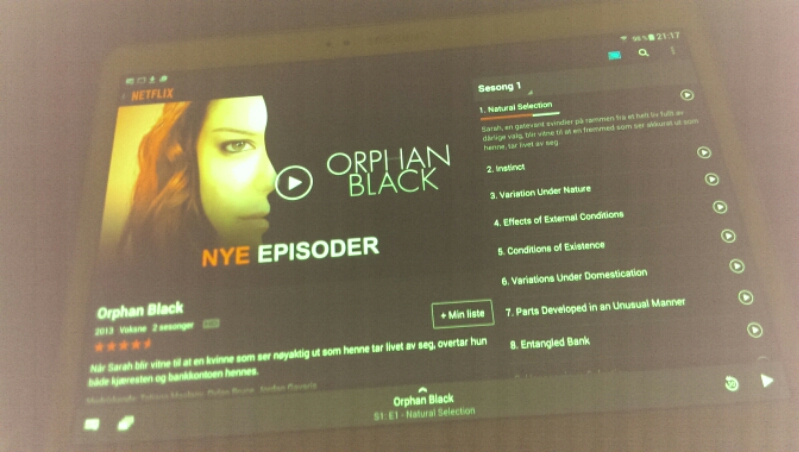 Endelig sunket ned i sofaen. Og nå ser vi Orphan Black. En serie på Netflix. Får håpe den er god.