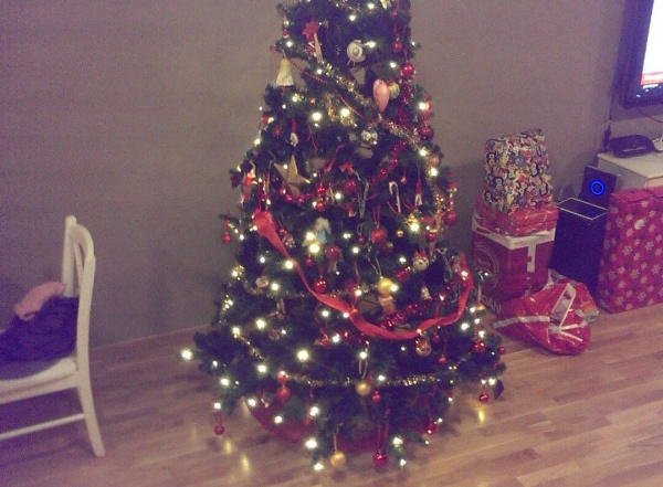 Vel hjemme så ikke ungene noen grunn til å utsette juletrepynting. Så nå har vi verdens peneste juletre i stua.