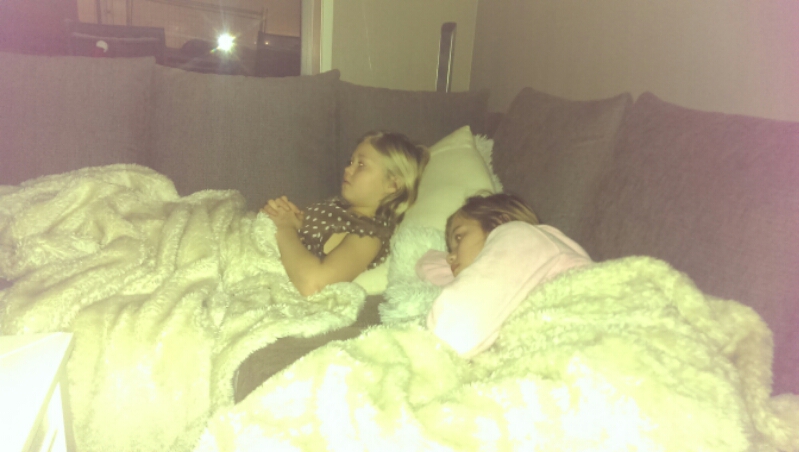 Og jammen har vi en familie som er samkjørt. Fikk åpnet døra, og sett et lite glimt at den gode sofaen da ungene ringte og ville hjem.