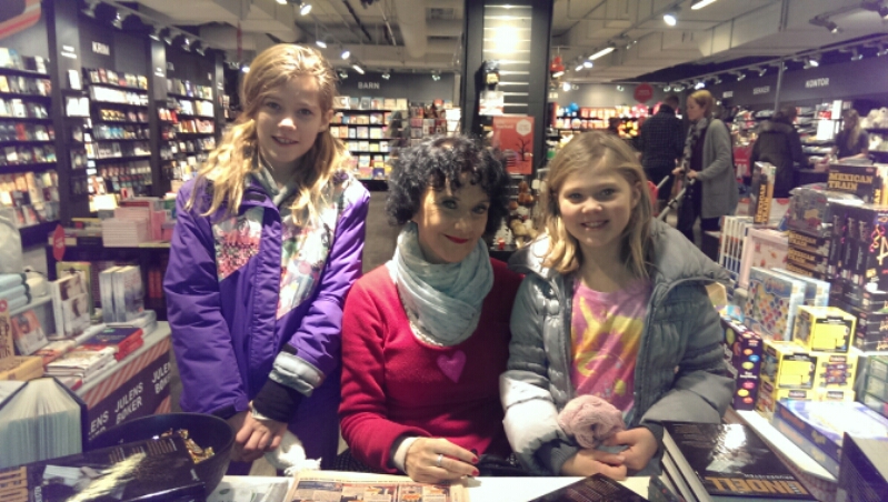 Vi fikk hentet klær og greier før vaktmesteren kom med søplebøtta. Og vi fant ut at vi også måtte ta oss en tur på senteret for å kjøpe noen gaver. Jentene fikk kjøpt til hverandre og til sin mor. Og på turen fant vi også Unni Lindell som satt og signerte bøker.