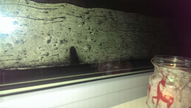 Men å skrape stuevinduene er liksom ikke bare moro. Vinduene i huset er så godt isolerte at isen på utsiden ikke forsvinner. Og ny is fryser på hver kveld.