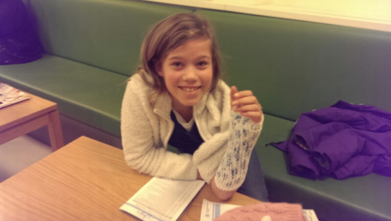Etter en 4-5 venterom fant de ut at det var et lite brudd i underarmsbeinet. Så da var det på med gips (nok et venterom).