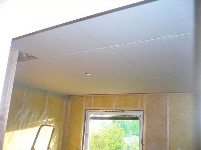 Og her skrur jeg fast gipsplatene i taket. PR. kåt jeg.. Nei, tror ikke det.
